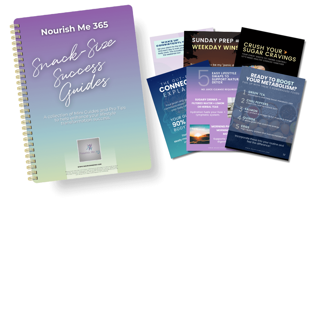 A collection of mini guides, pro tips and tricks, and cheat sheets that complement the Nourish Me 365 Lifestyle Success System.