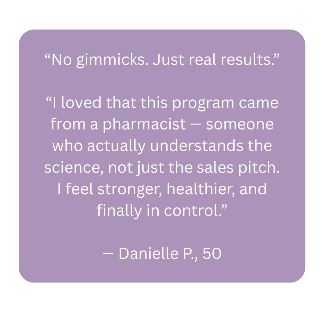 As a clinical pharmacist, I've spent decades helping patients transform their health from the inside out - balancing their medications, nutrition, fitness, and mindset and seeing firsthand what truly creates sustainable weight loss. I've watched hundreds of people finally break free from the cycle of dieting and learn how to nourish their way to health. You see, true transformation doesn't come from restriction. It comes from reconnection - mind to body. It isn't about perfection. It's about